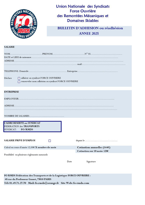 FO-RMDS Union Nationale des syndicats FO des personnels des remontées mécaniques et domaines skiables